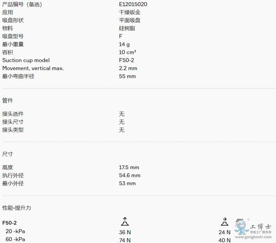 適用于硬紙板、鈑金、玻璃和多孔材料等平坦工件。該吸盤采用夾板結構,不僅可防止工件被吸入吸盤內部而導致變形,而且在提升力平行作用于工件表面時還能增加摩擦力。產品穩定性好,在工作期間幾乎不會發生任何偏移。