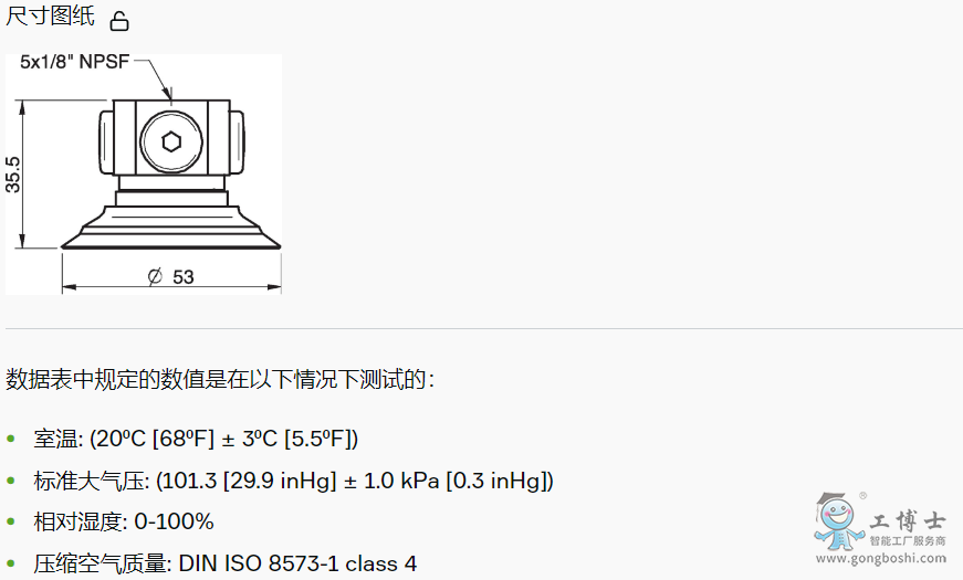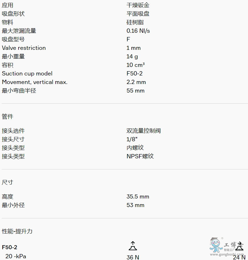 PIAB派亞博 0101759平面吸盤 F50-2,接口:5x1/8“ NPSF 內螺紋