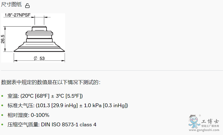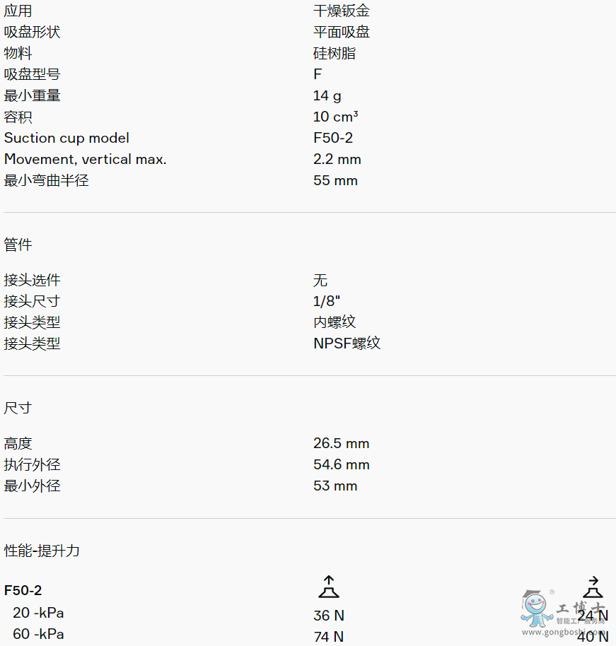 PIAB派亞博 0110346平面吸盤 F50-2,接口:1/8“ NPSF 內螺紋