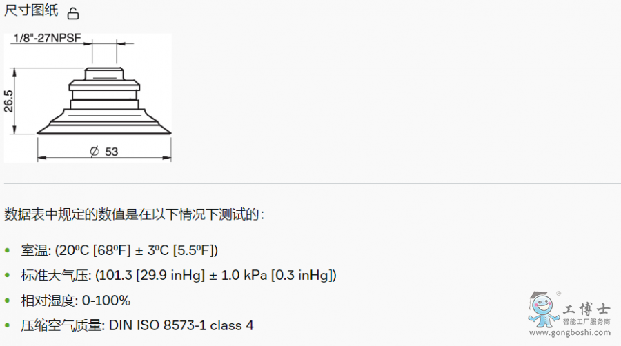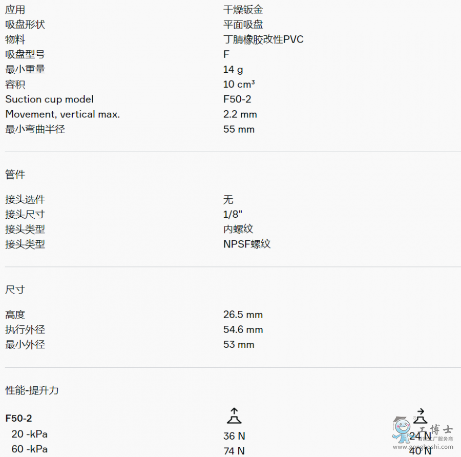 PIAB派亞博 0110952平面吸盤 F50-2 5x1/8“ NPSF內螺紋,帶雙流量控制閥