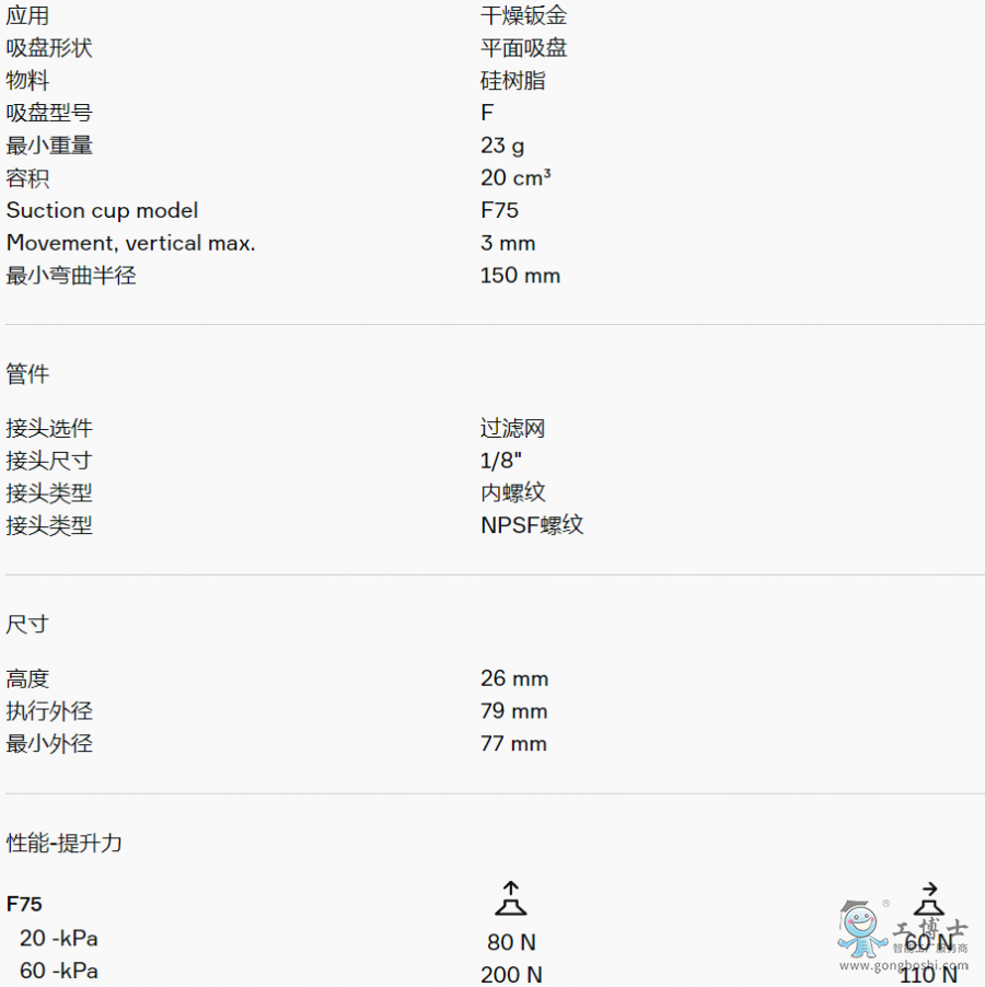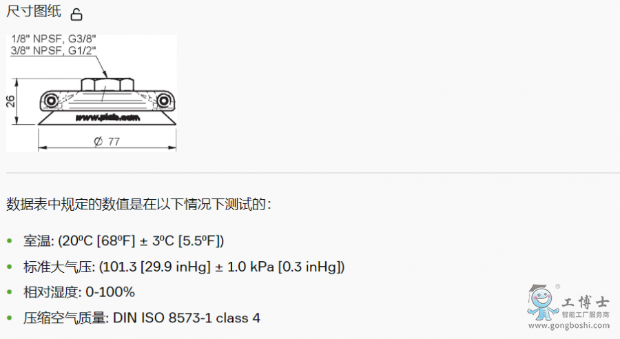 PIAB(派亞博) 0101868平面吸盤F75 3/8“ NPSF 內(nèi)螺紋, 帶網(wǎng)狀過濾器