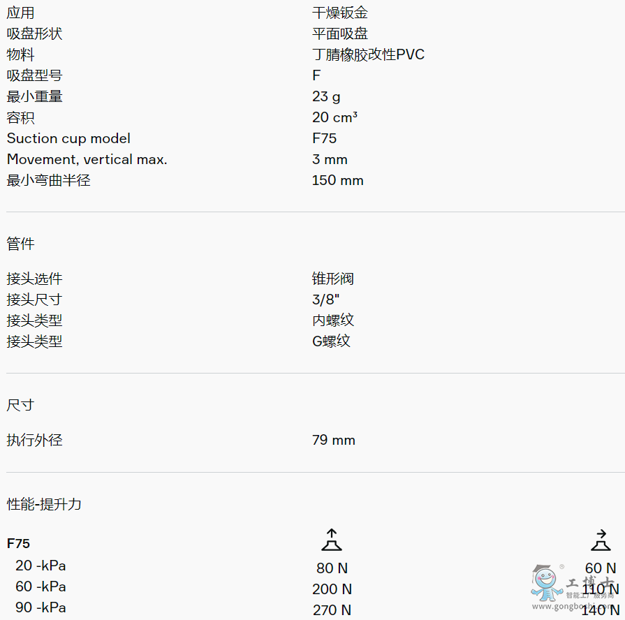 適用于硬紙板、鈑金、玻璃和多孔材料等平坦工件。該吸盤采用夾板結構,不僅可防止工件被吸入吸盤內部而導致變形,而且在提升力平行作用于工件表面時還能增加摩擦力。產品穩定性好,在工作期間幾乎不會發生任何偏移。