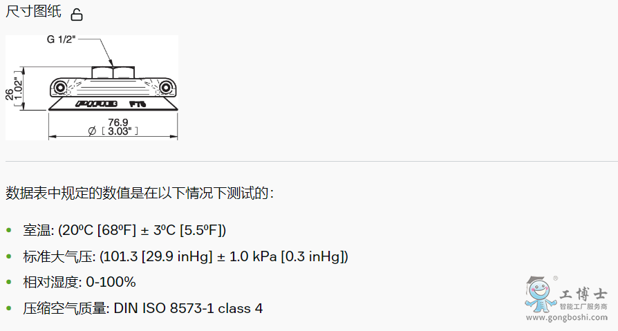 PIAB(派亞博) 0101877 平面吸盤F75 G3/8“ 內螺紋, 帶錐形閥