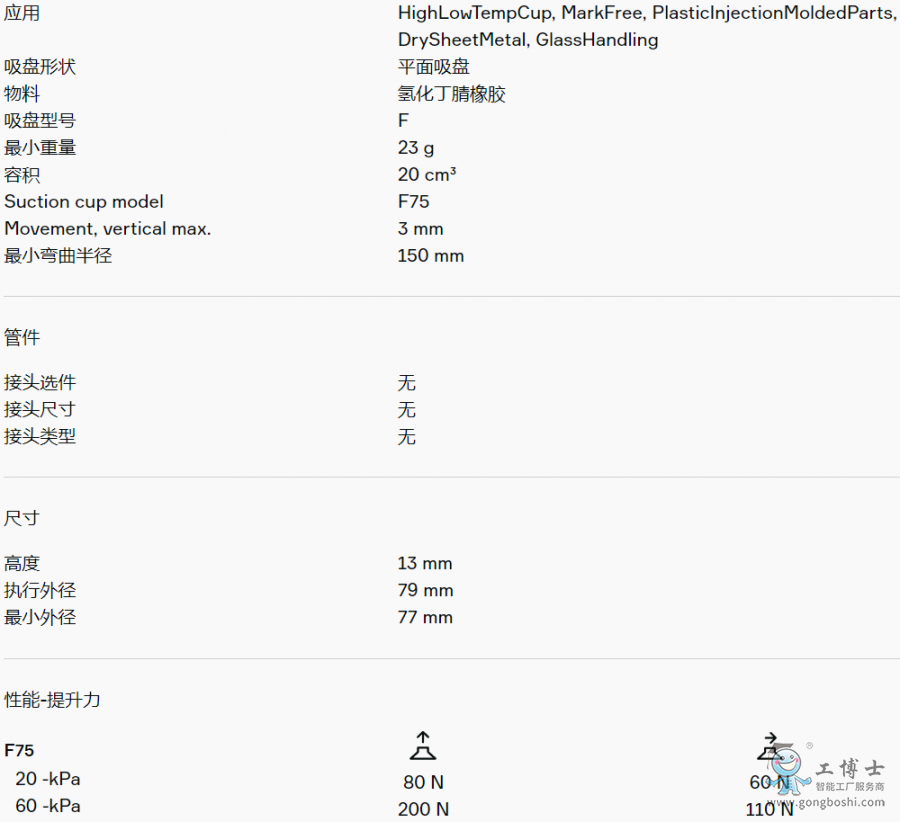 適用于硬紙板、鈑金、玻璃和多孔材料等平坦工件。該吸盤采用夾板結構,不僅可防止工件被吸入吸盤內部而導致變形,而且在提升力平行作用于工件表面時還能增加摩擦力。產品穩定性好,在工作期間幾乎不會發生任何偏移。