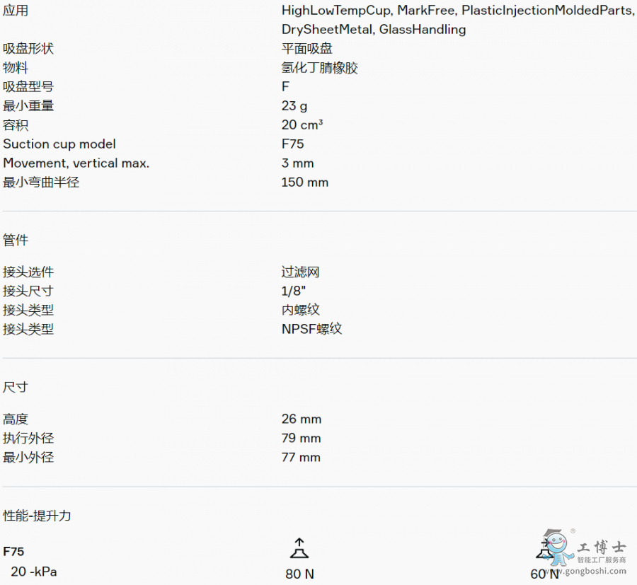 PIAB(派亞博) 0108184 平面吸盤F75 1/8“ NPSF 內(nèi)螺紋, 帶網(wǎng)狀過濾器