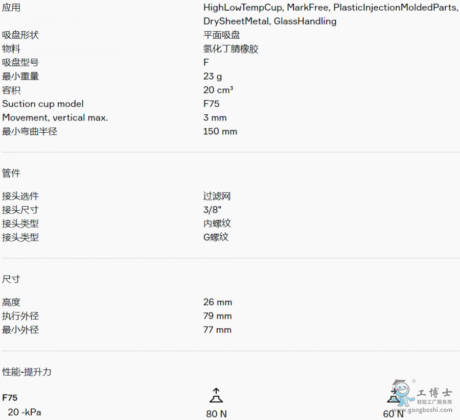 適用于硬紙板、鈑金、玻璃和多孔材料等平坦工件。該吸盤采用夾板結構,不僅可防止工件被吸入吸盤內部而導致變形,而且在提升力平行作用于工件表面時還能增加摩擦力。產品穩定性好,在工作期間幾乎不會發生任何偏移。
