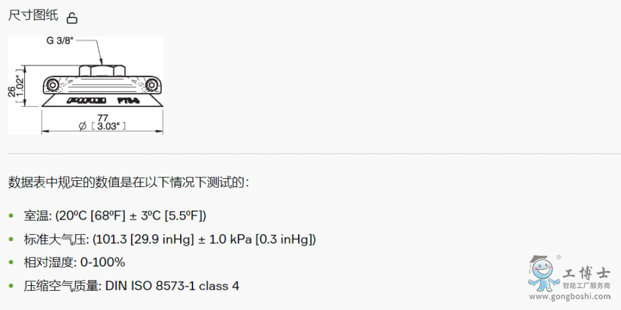 PIAB(派亞博) 0108185 平面吸盤F75 G3/8“ 內螺紋, 帶篩網過濾器