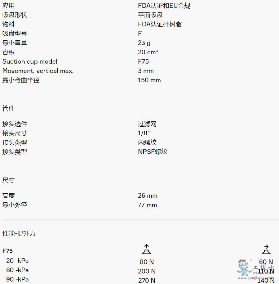 PIAB(派亞博) 0200264 平面吸盤F75FCM