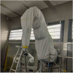 4、防灰塵。防護(hù)服使灰塵與機(jī)器人隔絕,便于清理。