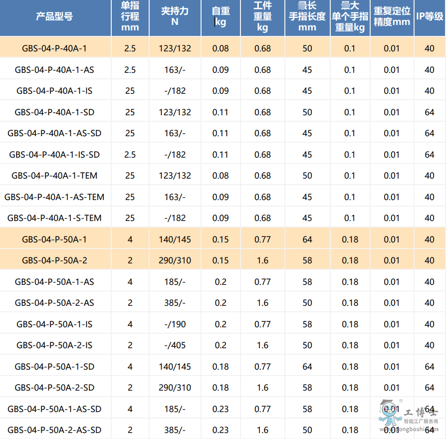 工博士機器人末端夾具 GBS-04-P-50A-2 兩指平動式夾爪