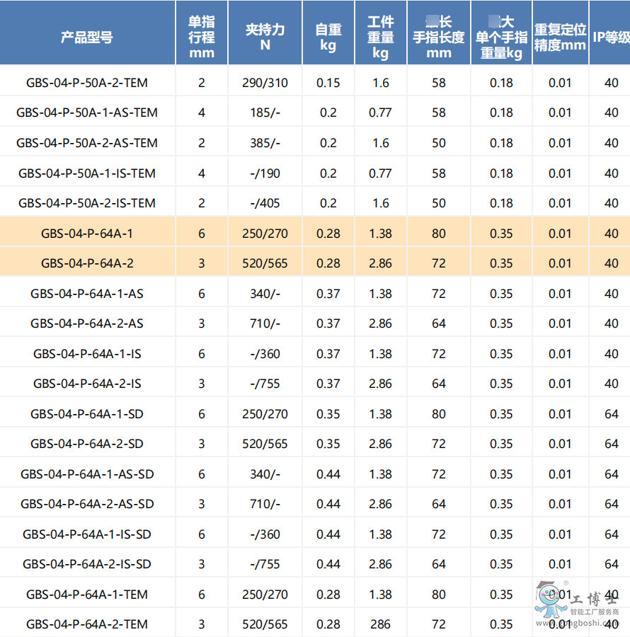 工博士機器人末端夾具 GBS-04-P-64A-1-TEM 兩指平動式夾爪