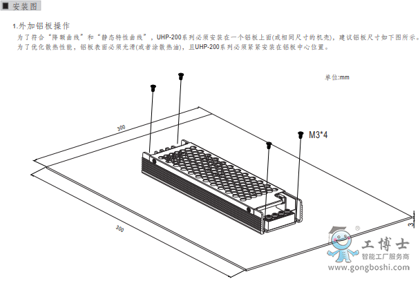 6. 電源應(yīng)視為系統(tǒng)內(nèi)元件的一部分,所有的EMC測(cè)試都將測(cè)試樣品安裝在一個(gè)厚度1mm,長(zhǎng)360mm*寬360mm的金屬鐵板上測(cè)試。