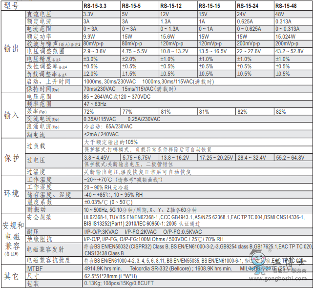 明緯電源:RS-15系列 15W單組輸出開關電源 型號:RS-15-5