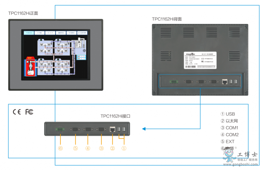 TPC1162Hi,是一套以**的Cortex-A8 CPU為核心(主頻1GHz)的高性能嵌入式一體化觸摸屏。該產品設計采用了10.4英寸高亮度TFT液晶顯示屏(分辨率800×600),四線電阻式觸摸屏(分辨率4096×4096),同時還預裝了MCGS嵌入式組態軟件(運行版)。