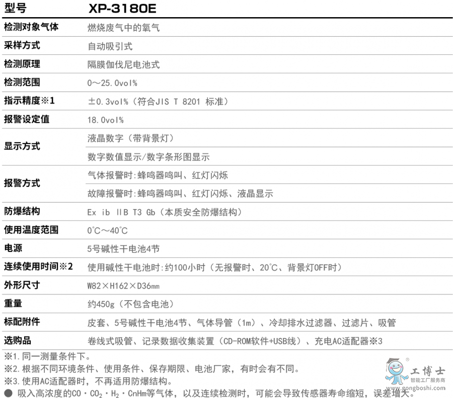 · 燃燒廢氣中的氧氣檢測(冷凍機(jī)/氣體發(fā)動機(jī)/鍋爐/焚燒爐等缺氧的檢測等)