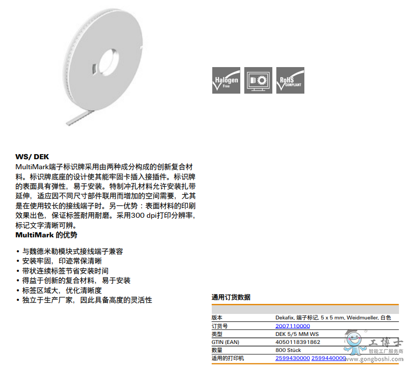 Weidmuller DEK 5/5 MM WS魏德米勒 端子標記號 訂貨號2007110000