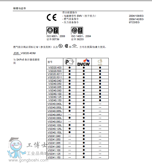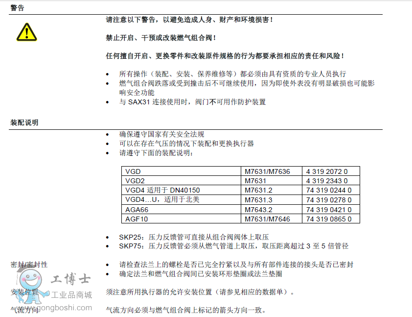 所有燃氣組合閥都可以與SKPx5 執行器任意組合使用。