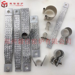 一體夾,這種單環或雙環,連接帶一起的硅碳棒夾具,常用于直徑較大的硅碳棒,安裝方便,螺絲緊固,編織帶的長度可以訂做。