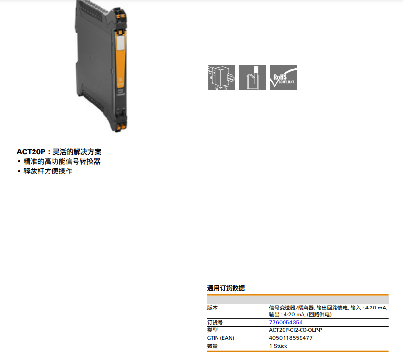 ACT20P-CI2-CO-OLP-P魏德米勒weidmulle信號變送器訂貨號7760054354