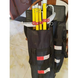 4.   接完后:用風(fēng)繩栓在鉤一側(cè)的環(huán)內(nèi),一人穩(wěn)住底部,一人拉繩,一到二人往起立,根據(jù)梯子的長(zhǎng)短限定人數(shù),立起后把掛鉤勾在承力索或其它能固定的地方。