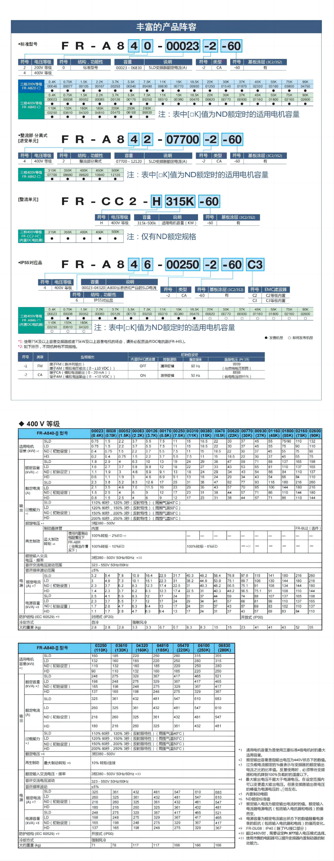 為應(yīng)對(duì)各類環(huán)境應(yīng)用場合,F(xiàn)R-A800系列變頻器對(duì)電路板進(jìn)行涂層處理,更具有IP55防護(hù)等級(jí)系列商品,可放心應(yīng)用于各種惡劣環(huán)境。內(nèi)置EMC濾波器,新開發(fā)的驅(qū)動(dòng)和供電技術(shù)更大大降低了電磁干擾,讓您安心使用于任何場合。FR-A800系列變頻器可搭載多語言LCD參數(shù)單元,增強(qiáng)了顯現(xiàn)和時(shí)鐘功用特性,使得顯現(xiàn)更明晰,操作更輕松。