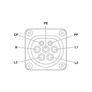 充電裝置插座出口和保護(hù)蓋,用于以交流電(AC)為電動(dòng)車輛(EV)充電,與2型充電裝置插頭兼容 安裝于電動(dòng)汽車充電站(EVSE)