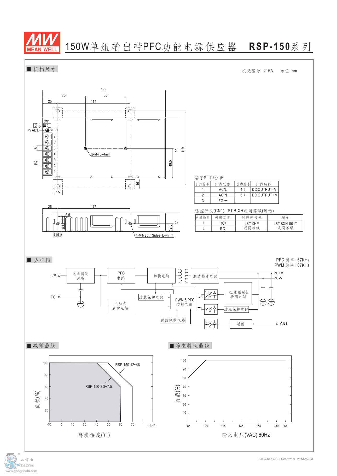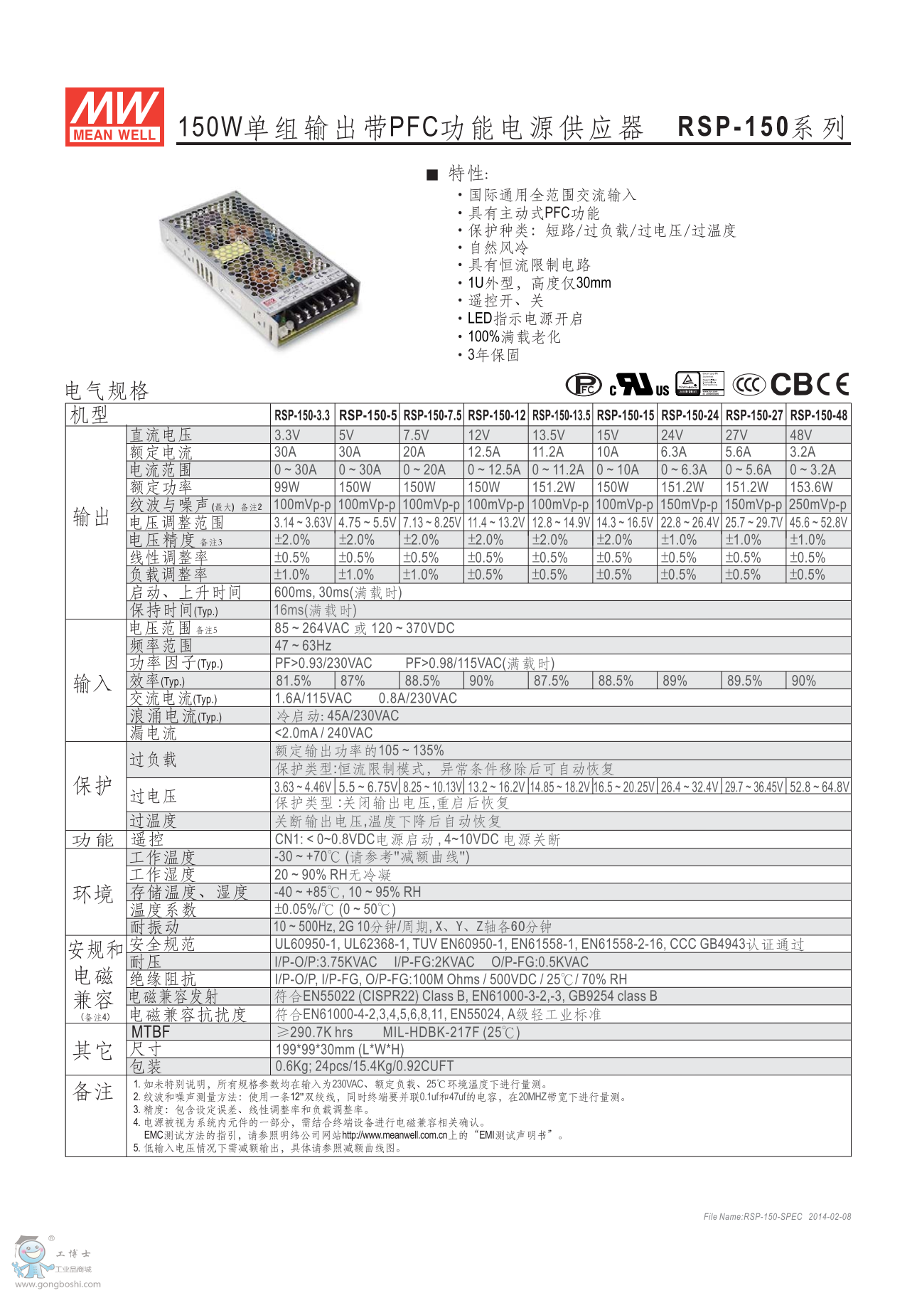 臺灣明緯開關電源RSP-150-24 150W單組輸出帶PFC功能電源