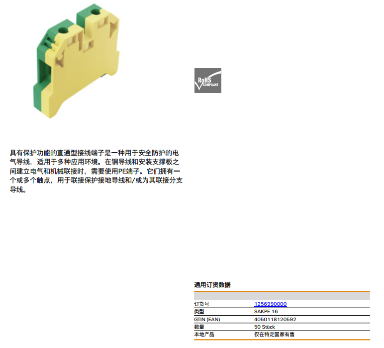Weidmuller SAKPE 16 魏德米勒 接地型接地端子 訂貨號1256990000