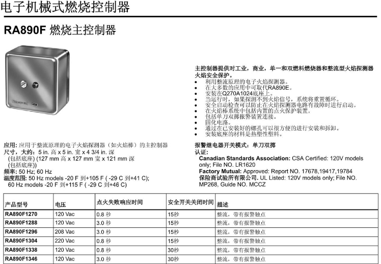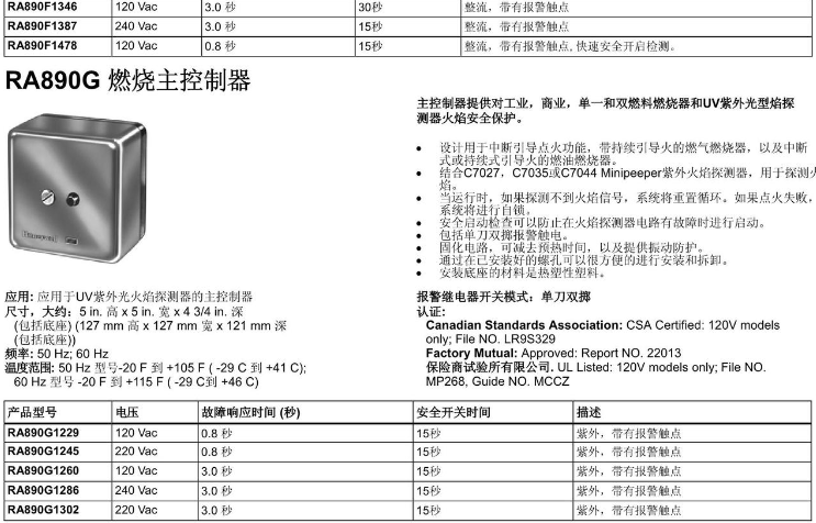 霍尼韋爾燃燒控制器 RA890F1346 RA890F系列