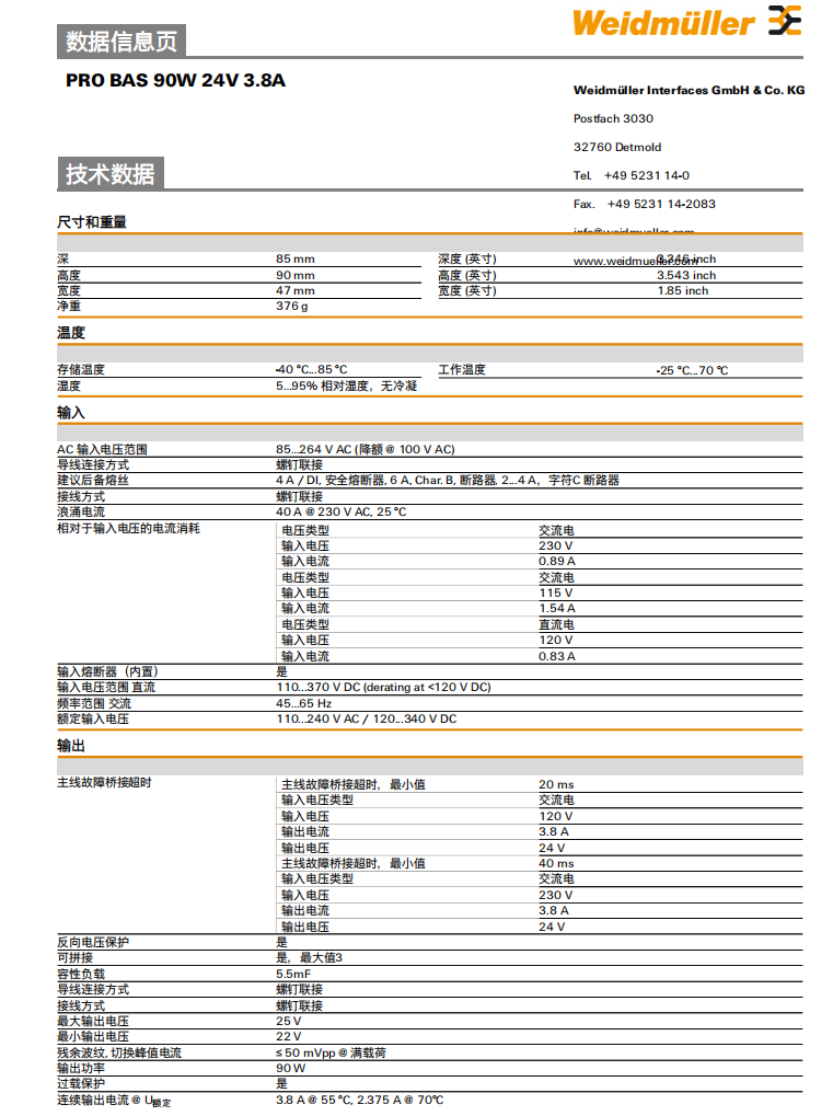 更多電源詳細參數數據可查看:   魏德米勒***新電源產品目錄.pdf