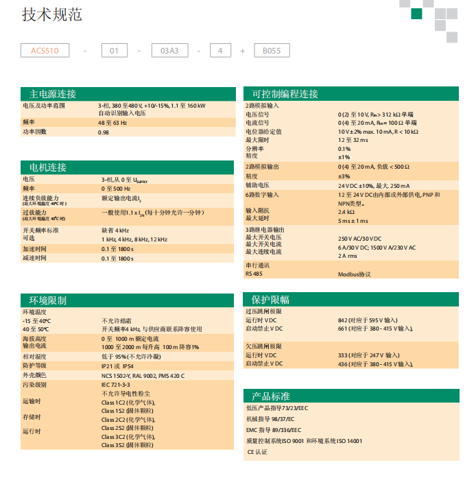 ACS510變頻器是ABB變頻器系列產品中的一款具備***特性的低壓交流傳動系統商品。