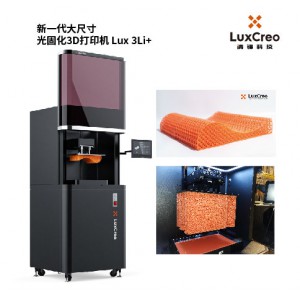 Lux 3Li+是新一代【大尺寸】DLP光固化3D打印機,打印面幅達400 × 259 x 380 mm,可以滿足大尺寸產(chǎn)品的規(guī)模化生產(chǎn)需求,應用覆蓋時尚消費、康復醫(yī)療、工業(yè)、汽車領域的同時,拓展至航空航天、運動器械等領域。