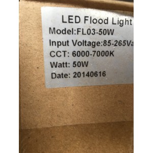 | 3 | LED Flood light | LED Flood light, model FL03-50W, Input voltage: 85-265 Vac, CCT: 6000-7000k, Wallt:50W. | FL03-50W, | EA | 3 |