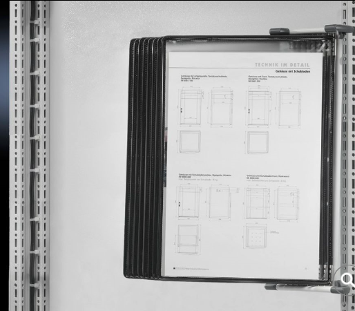 放置規格為 DIN A4 的檢測圖、文件等,可以安裝在表面上、在 TS 框架的 25 mm 孔陣或軌道系統中或手柄套件 Ø 20/25 mm 上。