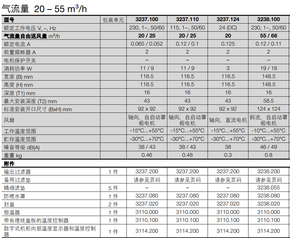 – 過濾器風扇 3237.XXX 是被兩