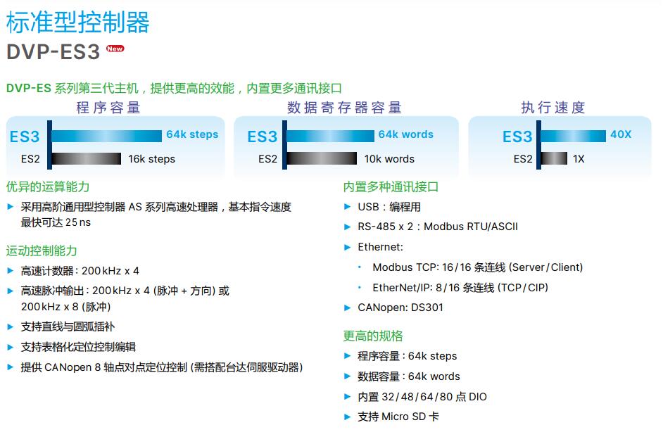 內置 32 / 48 / 64 / 80 點I/O并支持多組200 kHz 高速輸入/出