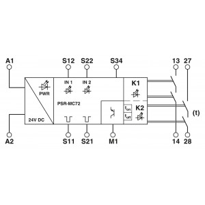 l PSR-CE2 適用于安全光幕、激光掃描儀、非接觸式感應開關(OSSD)等“24V DC有源信號輸出傳感器”監控