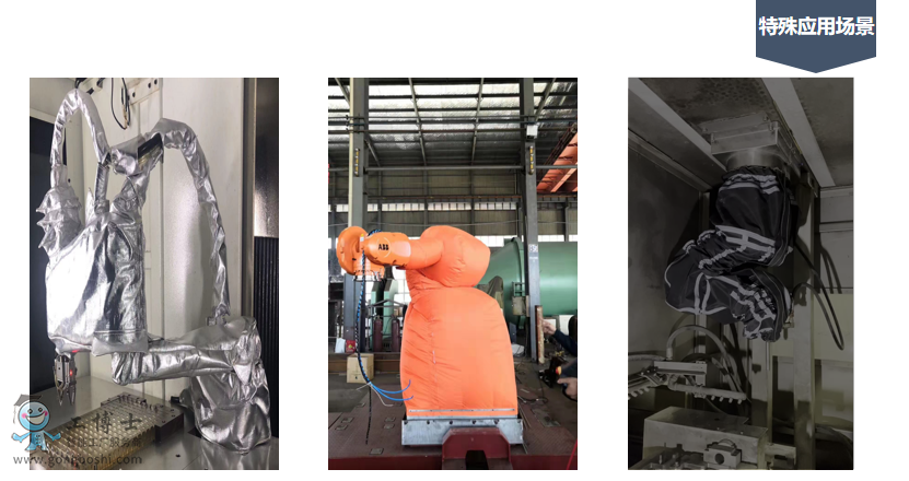 機(jī)器人抗靜電防護(hù)服主要用于汽車制造、電子加工、3C行業(yè)、拋光打磨和上下料等行業(yè),它主要起到防止涂料沾染機(jī)器人,防塵防靜電效果,防止灰塵進(jìn)入機(jī)器人本體對(duì)機(jī)器人內(nèi)部線路造成老化形成短路,同時(shí)也有效傳到化解生產(chǎn)車間中涂料分子碰撞所產(chǎn)生的靜電,避免火災(zāi)、爆燃等安全隱患。