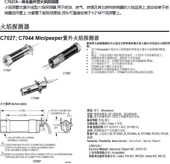 Honeywell火焰探測器探頭 C7027A1056 霍尼韋爾
