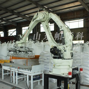 3. 膩子粉碼垛機適用性強。當客戶產品的尺寸、體積、形狀及托盤的外形尺寸發生變化時只需在觸摸屏上稍做修改即可,不會影響客戶的正常的生產。而機械式的碼垛機更改相當的麻煩甚是無法實現的。