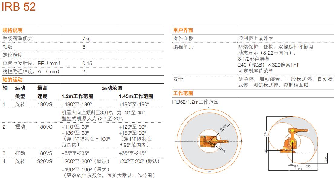 IRB 52體形小、工作范圍大,柔性與通用性俱佳,且其操