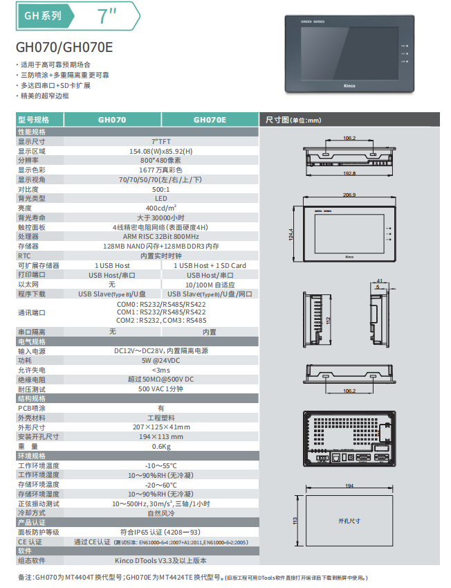 kinco步科7寸觸摸屏GH070/GH070E