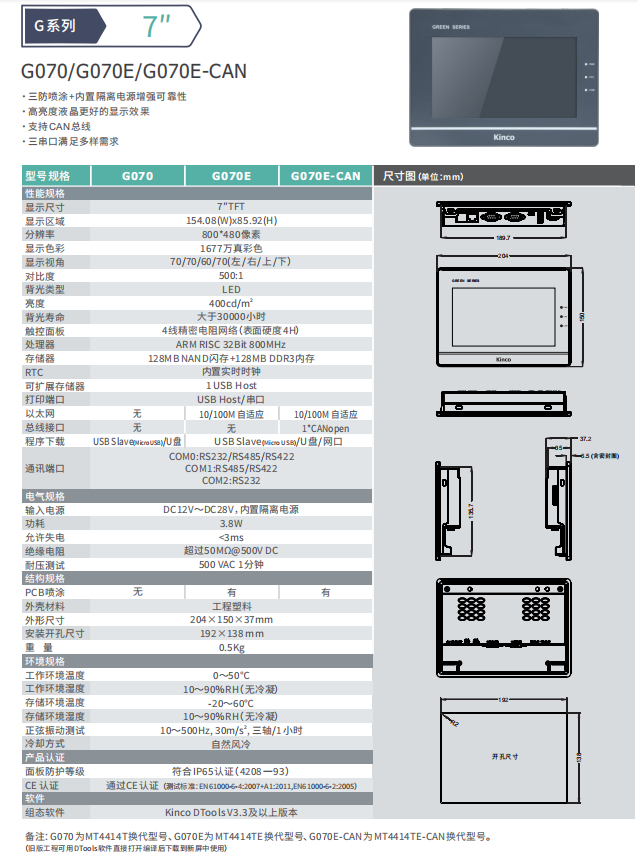 kinco步科7寸觸摸屏G070/G070E/G070E-CAN