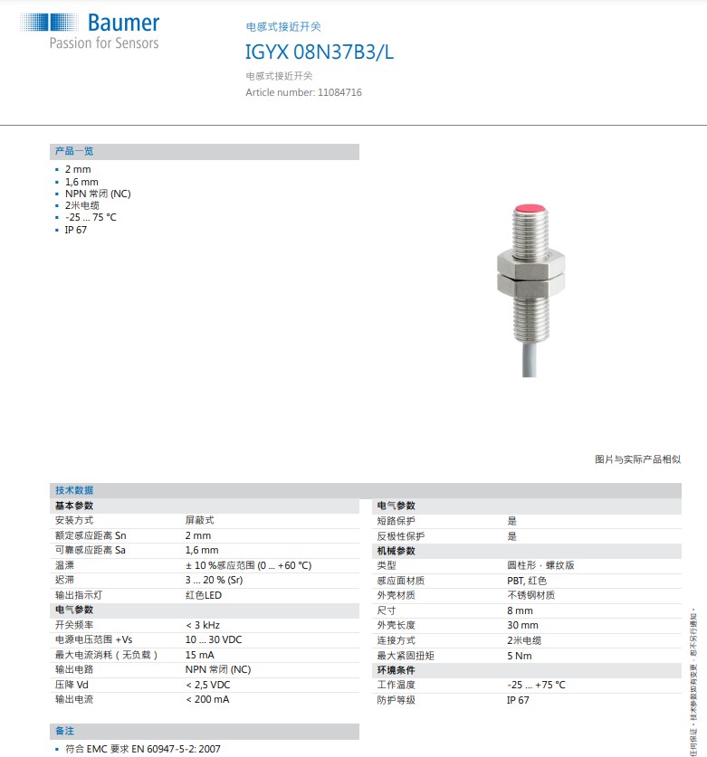 品牌: Baumer/堡盟