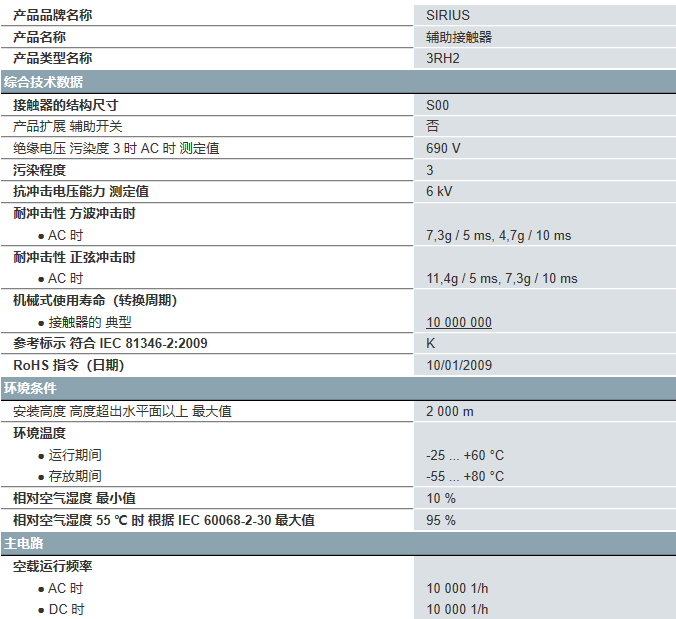 西門子輔助接觸器型號3RH2344-2AF00輔助接觸器,4 NO + 4 NC, AC 110 V,50