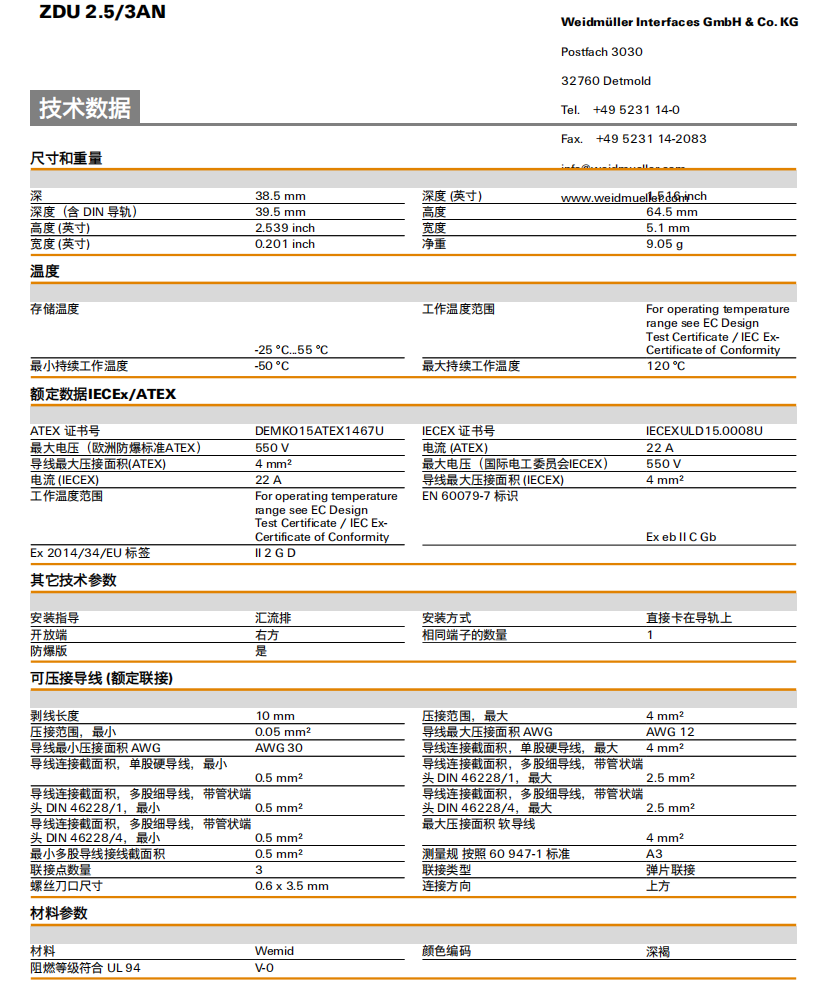 Weidmuller ZDU 2.5/3AN 魏德米勒 直通型接線端子