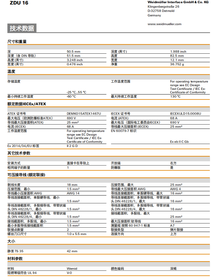 Weidmuller ZDU 16 魏德米勒 直通型接線(xiàn)端子 訂貨號(hào)1745230000