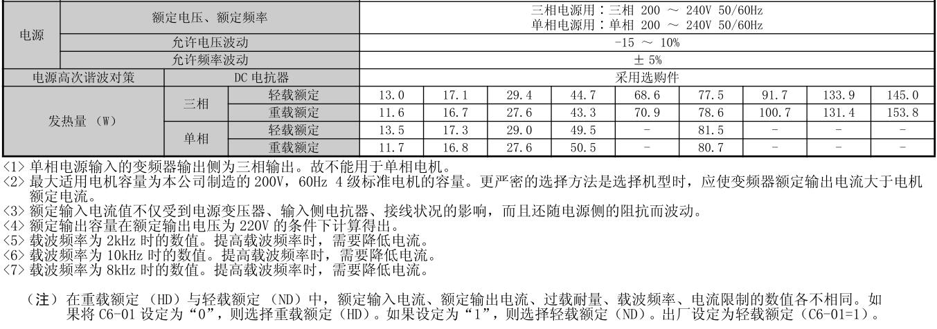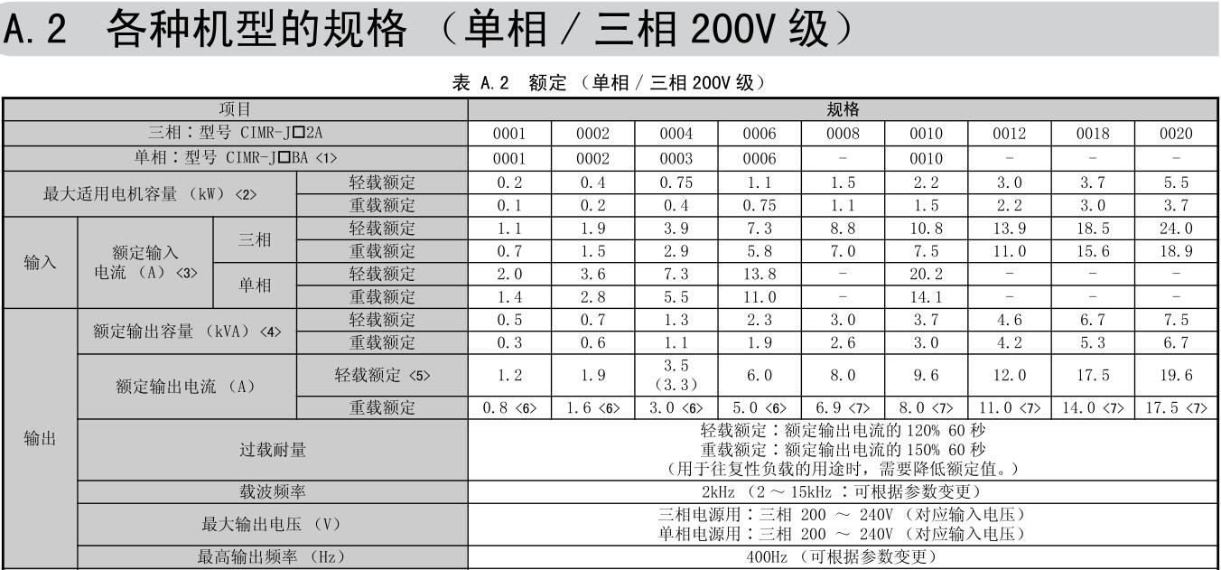容量范圍 200V級(三相電源用)0.1~5.5kW