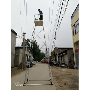 梯車(車梯)選用高強度鋁合金材料制造,型材截面設計合理,重量輕,車梯底架用鋼管制造,保證底架的穩定性和安全性,不變形。車輪為稀土尼龍輪強度高、運轉無噪音、絕緣性能好,其中有一車輪鑲嵌鋼環,解決安全接地問題。