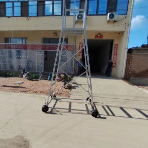梯車(車梯)選用高強度鋁合金材料制造,型材截面設計合理,重量輕,車梯底架用鋼管制造,保證底架的穩定性和安全性,不變形。車輪為稀土尼龍輪強度高、運轉無噪音、絕緣性能好,其中有一車輪鑲嵌鋼環,解決安全接地問題。
